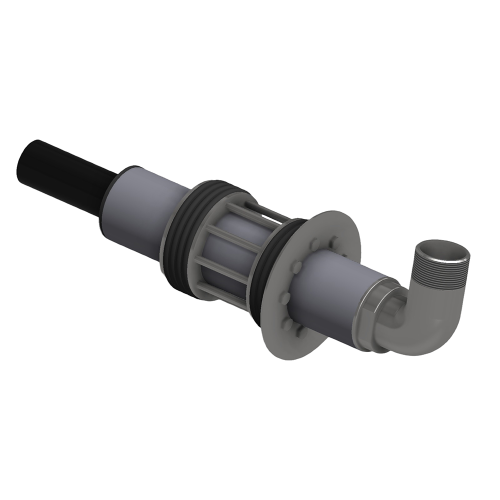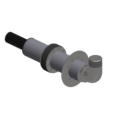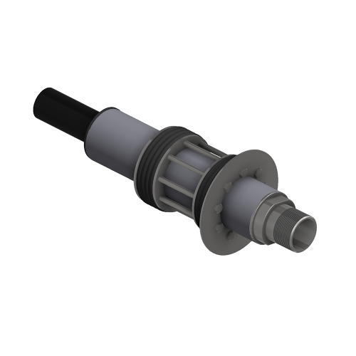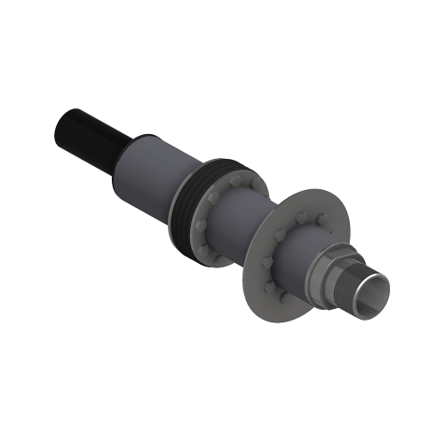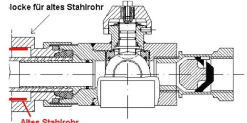 Die Einheit wird von der Kellerseite oder dem Hausanschlussraum einfach durch das alte Stahl oder PE Rohr geschoben und mit der in der Wand oder Bodenplatte verbliebenen Rohrkapsel RK1 verschraubt.